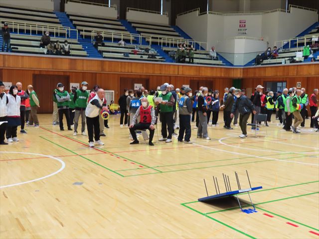 11月27日(金)ヤマト市民体育館前橋において、県内各地の代表56チーム363名が参加し、県老連輪投げ大会が開催されました。