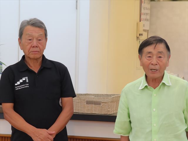 昼食会場で、県老連 後閑理事長(写真右)から主催者あいさつの後、地元館林市寿連 松澤会長(写真左)より歓迎のあいさつがありました。