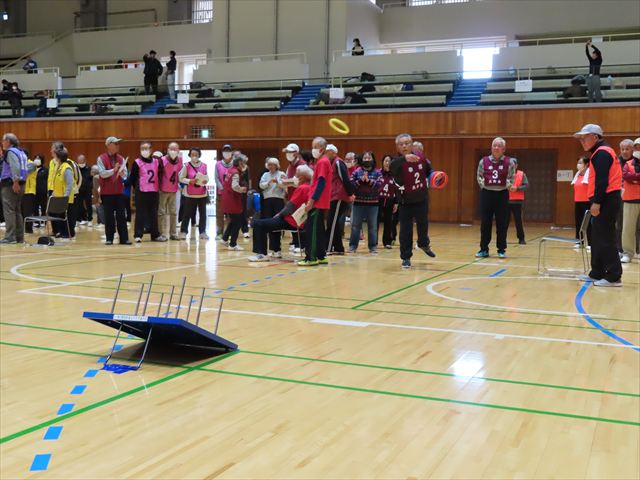 11月27日(金)ヤマト市民体育館前橋において、県内各地の代表56チーム363名が参加し、県老連輪投げ大会が開催されました。