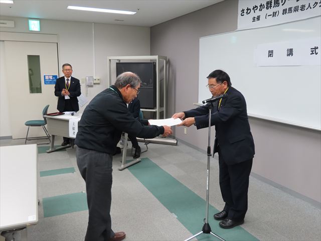 | 閉講式 | (一財)群馬県老人クラブ連合会 理事長 後閑千代壽 あいさつ |